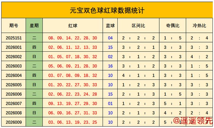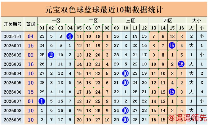 上期回顾:双色球第2026009期开出奖号:红球03、06、13、19、23、25;蓝球10,其中红球三区比为2:2:2,奇偶比5:1,蓝球开出大偶数号码10。